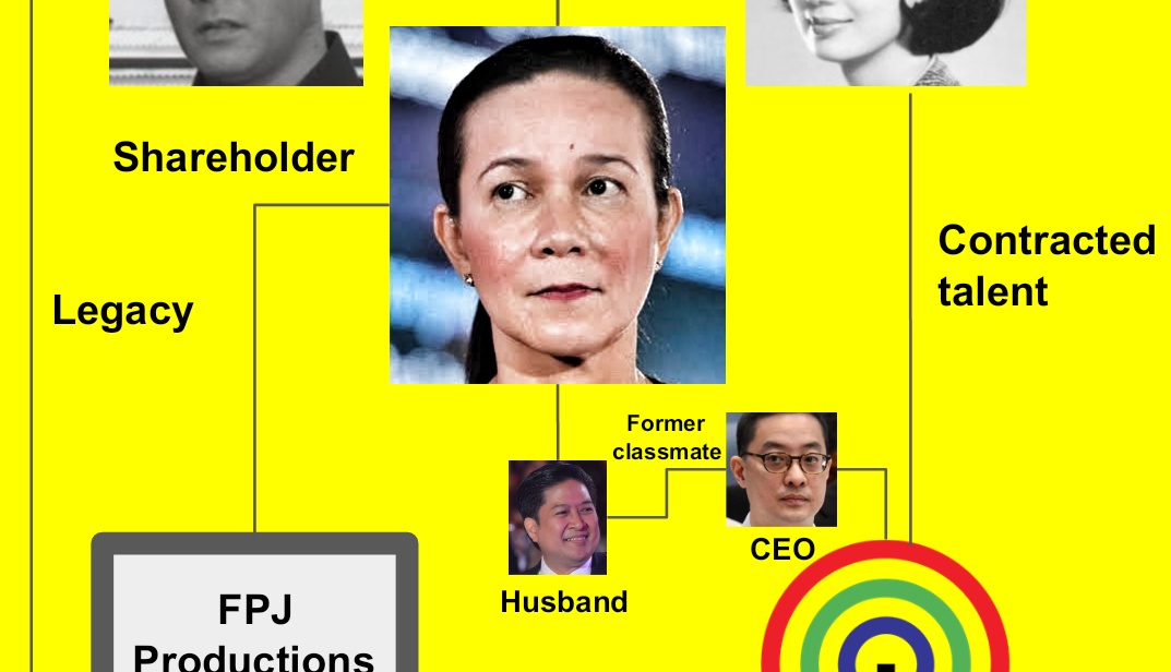 An illustrated network of relationships and family interests that bind Grace Poe to ABS-CBN